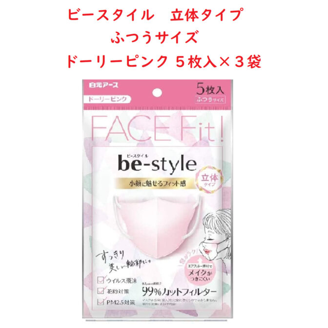 (セット商品) ビースタイル 小顔 マスク ふつうサイズ 立体 ホワイト3個+ピンク3個+プレゼント付